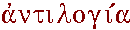 Antilogy [from the Gk. anti, “against” and logia, “speaking”]: A contradiction either in terms or ideas. More generally, antilogy names the basic rhetorical theory (propounded by Protagoras) that two contrary arguments may be given about everything. See in utrumque partes. © 1996-2003, Brigham Young University, Silva Rhetoricae (rhetoric.byu.edu)
